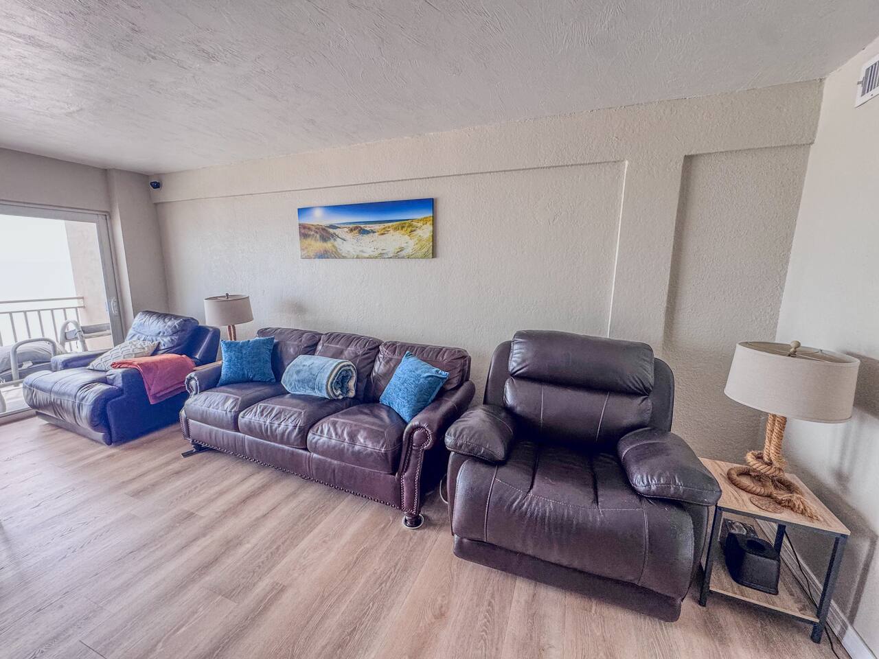 This condo is located in the Daytona Inn Beach Resort, a mixed-use property with both residential and short-term units. Building Info: The front desk is not affiliated with our rental—please contact us directly with any questions or issues. The unit is on the 4th floor and accessible by elevator or stairs. While the building is oceanfront, it is not a luxury resort—expect casual, beachy vibes and occasional normal wear from salt and weather. Parking Pass: – One parking pass is included. One vehicle permitted for this unit. – Please display it clearly on your dashboard to avoid towing. Tow company allows a 15-minute grace period to give guests time to retrieve and display the pass. – We are not responsible for any towing fees or fines. Access Info: – Your unique door code for the electronic lock will be provided before check-in. – Coin laundry machines are available on-site. Codes for the laundry room and pool deck will also be shared once confirmed (these are occasionally updated). House Rules & Reminders: – No pets allowed. – No Smoking in unit or on balcony – No grills or open flames permitted anywhere on the property. – Do not leave items in the tub or sink that may cause stains (especially spray-on tan products – these have caused damage in the past). – Any fines or fees resulting from rule violations are the guest’s responsibility. – Please be respectful of quiet hours and neighbors. important Information. Please Read Before Arrival Occasional Notices (we’ll let you know if these apply during your stay): – Ongoing AC repair (as of [insert date]). – Temporary water shutoffs (if scheduled by the building). – Association access requests (in case the HOA needs to enter the unit). Other notes: – No daily housekeeping is provided, but fresh linens and towels are supplied for your stay. – There is a portable AC unit in the bedroom and central air in the living room. The temperature is controlled by the building. There is a temperature dial in the living room but it is for the fan.