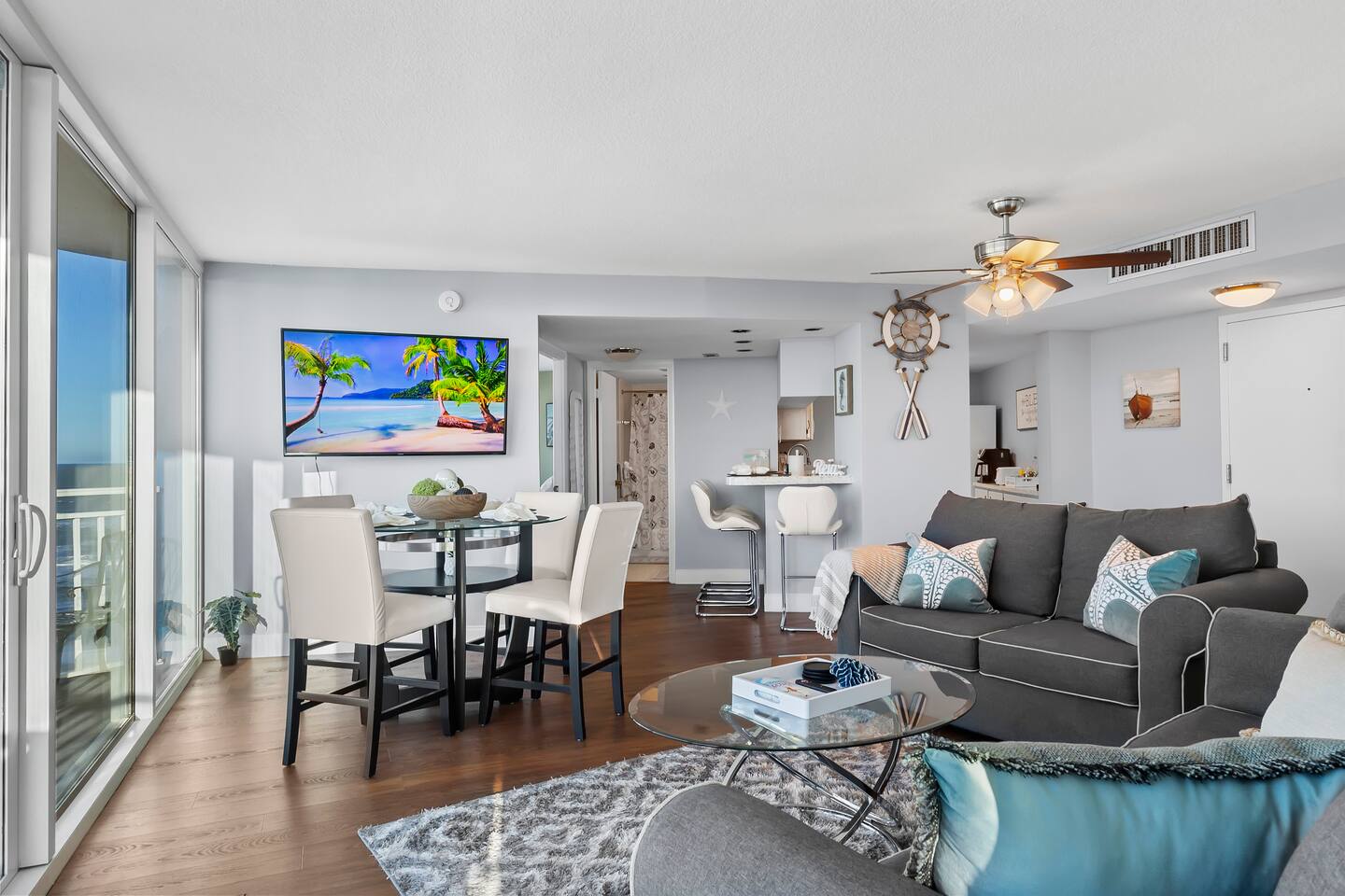 Contact host about special offers! Ocean view, private balcony, pool, fitness room, direct beach access!! ๐๏ธ Amenitites: Temperature contolled pool, Jacuzzi, Access to beach, Shared Club Area, Shared Gym, and much more! ๐ This condo is on the 9th floor #9NW ๐๏ธ 2 bedrooms, king, queen and twin mattress ๐ 2 bath (tub/showers) ๐ There is 1 parking space in the lower garage. Clearance is 6 feet which is enough for your average vehilcle ๐ป Trucks recommended to park in visitors section
